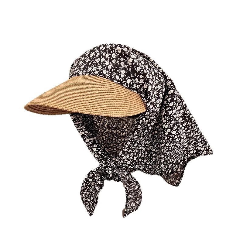 2025新款碎花防曬絲巾帽 護頸護臉一體式防曬帽 360度隔離紫外線 百搭遮陽 時尚有型 透氣舒適 戶外出行穿搭必備