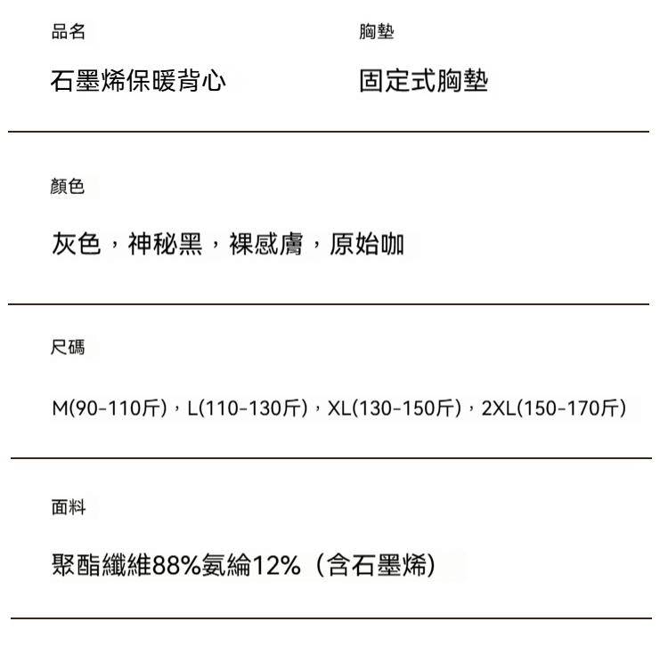 [5]「限量200組」石墨烯保暖背心 5入組 NT$ 1499