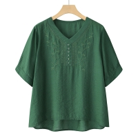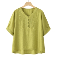 冰涼夏季天絲麻套裝 寬鬆遮肉顯瘦 柔軟親膚 輕薄透氣 告別夏日悶熱 民族風精緻小刺繡點綴 時尚洋氣又減齡