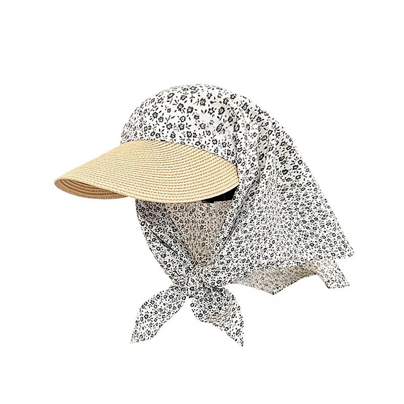2025新款碎花防曬絲巾帽 護頸護臉一體式防曬帽 360度隔離紫外線 百搭遮陽 時尚有型 透氣舒適 戶外出行穿搭必備