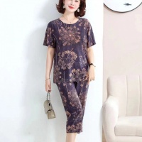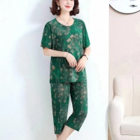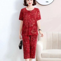 專屬中老年媽媽的時尚 冰絲面料夏日必備 寬鬆剪裁休閒短袖 展現中老年媽媽魅力 清爽透氣穿著無負擔