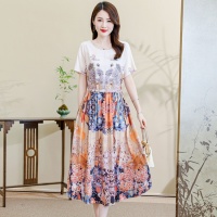 2025秋季新款高端氣質棉綢連衣裙 高支波西米亞民族風長裙子 收腰顯瘦顯高 性感優雅知性風
